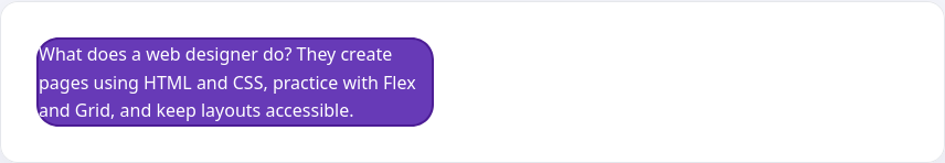 What does a web designer do? They create pages using HTML and CSS. They can use the capabilities of Flex and Grid modules. They use the SASS preprocessor and the Pug templating engine, and builds projects with Gulp. They keep track of site accessibility by creating semantically correct markup. They create components and utilities on Bootstrap. They lay out adaptive projects.