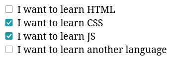 <input type="checkbox" name="languages" value="CSS">