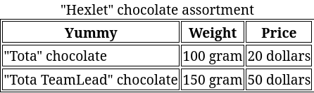 </table>Additionally, you can specify the "footer" of the table. It can contain summary information, such as the cost of all goods.