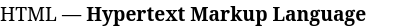 <p>HTML — <strong>Hypertext Markup Language</strong></p>